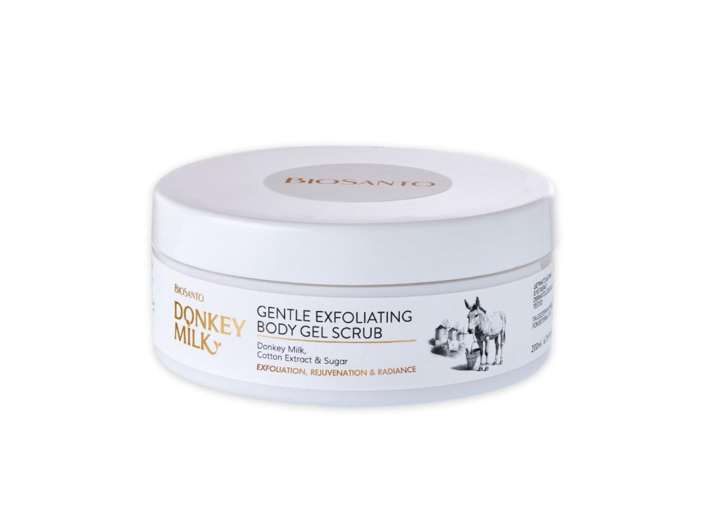 Dopřejte své pokožce hloubkovou obnovu s jemným tělovým peelingem Biosanto Donkey. Díky kombinaci cukrových krystalků, oslího mléka a extraktu z bavlny účinně odstraňuje odumřelé buňky, podporuje regeneraci a zároveň intenzivně hydratuje. Jemná gelová textura šetrně pečuje o pokožku, zanechává ji vyhlazenou, pružnou a příjemně hebkou na dotek.
