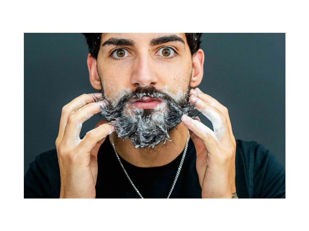 Krok 2 - Čisté vousy: Naneste si na ruku trochu mycího prostředku na vousy a jemně ho vmasírujte do vousů.