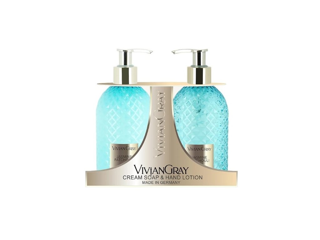 Luxusní SET Vivian Gray Gemstone Turquoise Crystal Jasmine Patchouli v sobě spojuje péči a eleganci. Tekuté mýdlo jemně čistí a osvěžuje pokožku rukou, zatímco mléko na ruce ji hloubkově vyživuje, hydratuje a zanechává hedvábně jemnou.