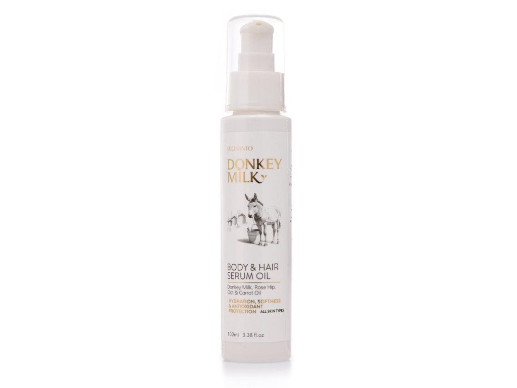Sérum-olej na tělo a vlasy s oslím mlékem a přírodními hydratačními oleji, které dodávají vlasům hebkost a zlepšují vzhled pokožky i po slunění. Zároveň dodávají vlasům lesk, redukují krepatění a chrání konečky před teplem. Jeho složení obsahuje mrkvový, slunečnicový a šípkový olej, bohaté na mastné kyseliny Ω3 a Ω6, které vyživují pokožku a udržují ji hebkou a pružnou. Má lehkou texturu a nezanechává mastný film.